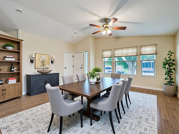 This property is located on one of the most sought-after lots in Las Palmas Grand, Mesa's premier 55+ active adult resort community, where every day feels like a vacation. A beautifully maintained home combines style, comfort, and a welcoming sense of community. Step inside and you'll be greeted by bright, open living spaces filled with natural light from multiple skylights. Greeted by luxury laminate wood flooring flowing throughout. The kitchen is the heart of the home, featuring granite countertops, a center island, and plenty of cabinetry — perfect for both quiet dinners and gatherings with friends. A spacious laundry room with extra cabinets makes organization effortless, while the separate dining area adds a touch of traditional charm. Both bedrooms feature walk-in closets, offering ample storage. The primary suite is a spacious - serene retreat, while the guest room provides a comfortable space for visitors or a home office. Enjoy Arizona's sunshine year-round in your private backyard, complete with mature fruit trees and a peaceful setting that's perfect for morning coffee or evening relaxation. You'll also appreciate the designated golf cart parking spot, offering quick access to the community's resort-style amenities. At Las Palmas Grand, you'll find endless ways to stay active and social - from tennis, pickleball, and fitness classes to poolside relaxation, live entertainment, and community events. This move-in-ready home is more than a place to live it's a chance to enjoy the vibrant, carefree lifestyle you've been waiting for. Take a look for yourself...