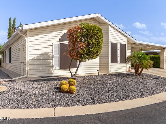 You're going to love this newly upgraded move in ready home with 2 bed 2 bath + den + 415 sf heated and cooled AZ room and golf cart garage. This Cavco built, St Andrews model, conveniently sits on a corner lot in the desirable Las Palmas Grand community. Over $40,000 in recent upgrades includes new roof, flooring/baseboards/door trim throughout, interior and exterior paint, sun screens, primary bath vanity, faucets and fixtures, water heater, kitchen cabinets painted with new hardware added, new appliances and so much more. Las Palmas community is full of activities and amenities including a large swimming pool, hot tub, tennis, pickleball, billiards, fitness center, and arts, crafts and clubs for all!