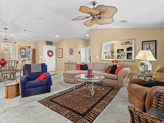 This 2 bedroom, 2 bath plus a den is furnished and decor included. Upgraded cabinets, new oven and microwave, built ins in family room, screened Az room ready for entertaining and relaxing. A shed that includes the washer & dryer. Newer upgraded lighting, wet bar, and 2" blinds. Don't let this colorful and move in ready gem go. *Fully furnished with all decor included *Lovely screened in AZ room *Beautiful mature landscaping