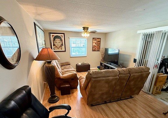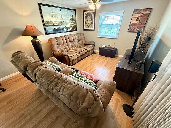 This sounds like a charming and well-positioned home perfect for someone looking to settle into a vibrant 55+ community with convenience and comfort. This inviting 2 Bedroom / 1 Bath Home offers vinyl-siding comes partially furnished with a split bedroom floorplan. The kitchen opens up into the Living room offering ample space for family and friends during this season. The home offers new laminate flooring and a screened-in porch on the back portion of the carport. All kitchen appliances are included plus the washer and dryer. Come tour this home and make it yours today! This is one home that is a must see that is beautifully situated in our lovely 55+ Active Community, conveniently located 15 minutes from the beach, and walking distance to all the shopping and restaurants for any palette.