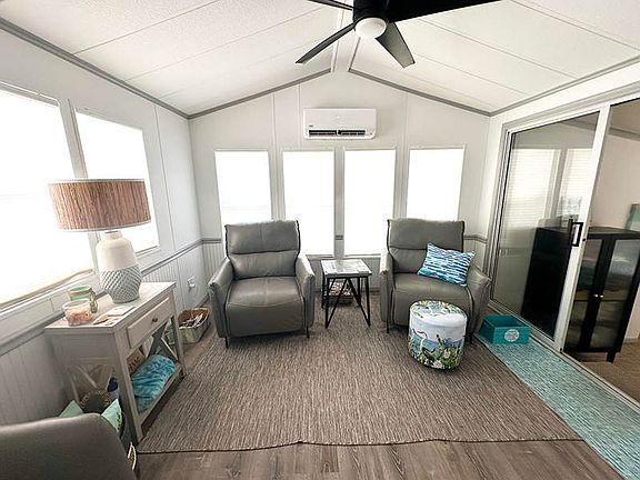 This 768 square feet Park Model home in Bonita Terra is perfect for those looking for a cozy and comfortable living space. Built in 1991 by Chariot Eagle, this home offers 1.5 bedrooms and 1 bathroom, providing ample space for a small family or a couple looking to downsize. The open layout of the home creates a spacious feel, with a well-equipped kitchen, living room, and dining area. The home also features: New shingles on house in 2023Updated metal roof with insulated panels over lanai. - 2023New vinyl flooring - 2021New Amazon shed - 2024Upgraded to 100 amp - 2024Windows upgraded in lanai - 2024Lots more extras too....Leased landLocated in Bonita Springs, FL, Bonita Terra is a charming community known for its serene surroundings and friendly atmosphere. The community offers a range of amenities, including a clubhouse, swimming pool, and shuffleboard courts, providing residents with plenty of opportunities for recreation and relaxation. With its close proximity to the beach, shopping, and dining options, Bonita Terra offers the perfect balance of tranquility and convenience for those looking to enjoy the Florida lifestyle.