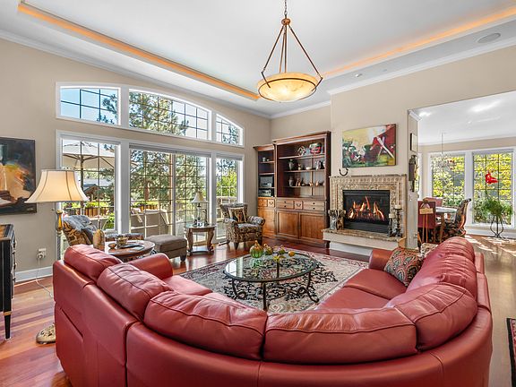 Offers welcome. Set on an elevated private lot in Shevlin Ridge where tall pine trees and outdoor living abound, this spacious and unique home was beautifully remodeled in 2010 to add an additional 500 sq ft of living space. Here, an open layout, soaring ceilings and natural light create an ideal retreat into privacy and elegance, complete with brazilian cherry floors, coffered underlit ceilings and wrap-around paver patio. An open kitchen for entertaining or cooking for a crowd, with an oversized island and luxury appliances. Cozy up in the great room by the gas fireplace and custom hearth, or retreat to the family room with access to the private back patio. On the main floor, the sun-lit primary suite offers a double vanity, claw-foot tub and tile shower, large walk-in closet and two additional bedrooms with jack & jill bath. A lower level ensuite bedroom, media room, or office adds even more space to unwind. The three car heated garage and carport includes room for a workshop.