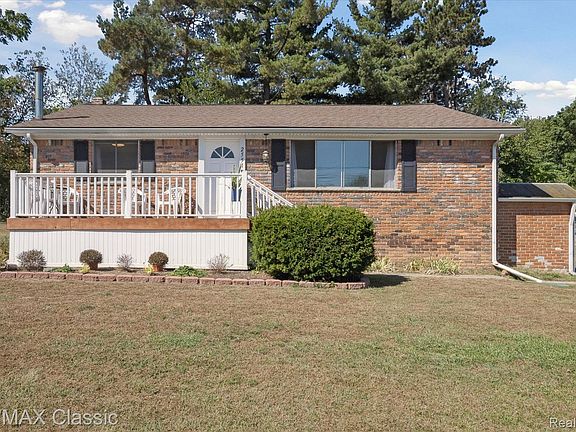 Welcome to this well kept ranch with lake priv on Wolverine Lake. No HOA ! You will fall in love with is corner lot and large bright great room open to kitchen and all appliances stay! Walk out basement could be a 4th bedroom(has a closet) or another living area. There is a full bath in the basement with a nice shower but no toilet. Seller removed it because it needs an ejection pump. The full bath on main level was redone in 2025 and so were the gutters ,soffits/facia .Hansen's 2015.The pretty front deck was 2023 and so was the garage door. Water softener redone in 2023 and the pressure tank replaced in 2020. The nice breezeway from the kitchen to the garage is very nice to have. There is a park in the sub and a public boat launch. Riding lawn more is included! The spacious back yard has a nice patio and has a covered area for shade. Fences are allowed with village approval. Village tax is included in the summer tax bill. Sewer hookup(when needed ) is at the street and no assessments now. Sewer would need to be hooked up if or when septic fails. Tons of storage Occupancy could be at closing .