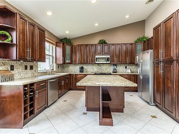 Enjoy this HUGE one of kind yard, large enough for you to host all your family and friends. This oversized lot gives you plenty of privacy with no neighbors behind and beautiful lake views. Plenty of room for a large pool. A custom covered sitting area was added giving you the perfect place to enjoy the backyard. The kitchen was completely remodeled with gorgeous, rich wood cabinetry with soft close drawers and doors. All stainless steel appliances, beautiful granite countertops and backsplash, large center island with sitting area. 2 bathrooms have been completely remodeled with new tile and fixtures. Home is protected by accordion shutters and a security system with numerous cameras throughout the property. AC was replaced in 2013, water heater replaced 2015.