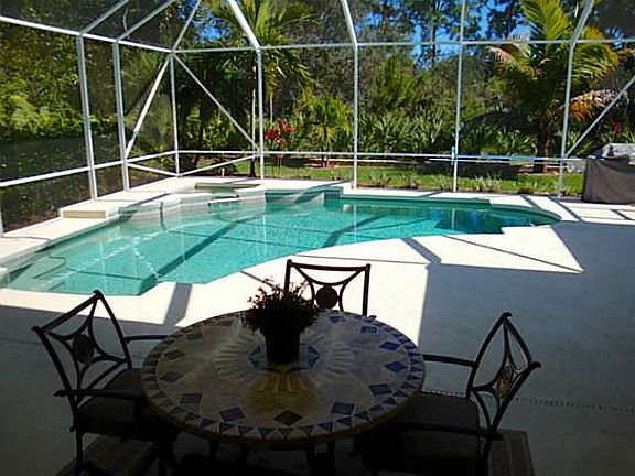 Beautiful pool home with view of wooded preserve. Light and bright with volume ceilings and spacious rooms. Gourmet kitchen with stunning granite counters, glass back splash, stainless appliances, and breakfast nook. Split plan with updated bathrooms, designer colors, and beautiful views throughout. Separate living room and family room plus formal dining. Oversized two-car garage. Close to A-rated schools, pristine beaches, dining, shopping, and the best of Martin County.