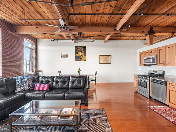 Located in the coveted Ribbon Factory Lofts, this spacious one-bedroom, one-bath unit perfectly blends industrial charm with modern convenience. Original timber beams, exposed brick walls, and hardwood floors highlight the space’s historic character, while large, south-facing windows offer stunning city skyline views and fill the home with natural light. The unit includes a deeded, secure parking space, so you’ll never have to worry about street parking. The open-concept layout provides flexibility for living, dining, and working from home, while the spacious, private bedroom features a generous closet and ample lofted storage. The full bathroom includes a full-size laundry area and linen closet, making organization a breeze. This condo is fully furnished, making it move-in ready for those looking to enjoy the space immediately. Located in Fishtown, one of the city’s most dynamic neighborhoods, you’ll be just steps from a variety of dining, entertainment, and nightlife options. Explore local hotspots like Post Haste, Circles and Squares, Meetinghouse, Picnic, and all that lively Frankford Avenue has to offer. All major highways and public transit are nearby, ensuring an easy commute. Don’t miss your chance to own a unique loft condo in one of Philadelphia’s most desirable areas. Schedule your showing today!