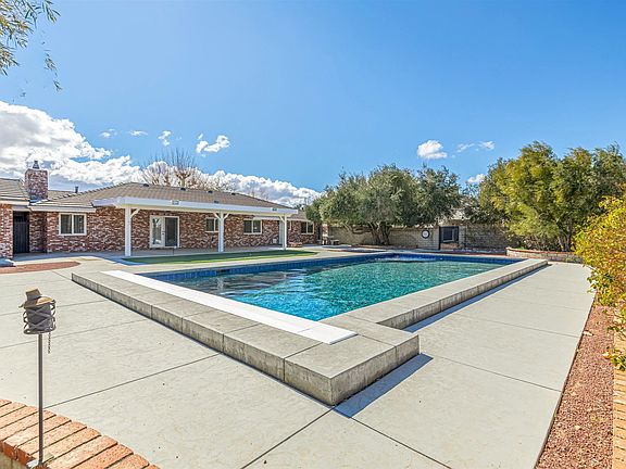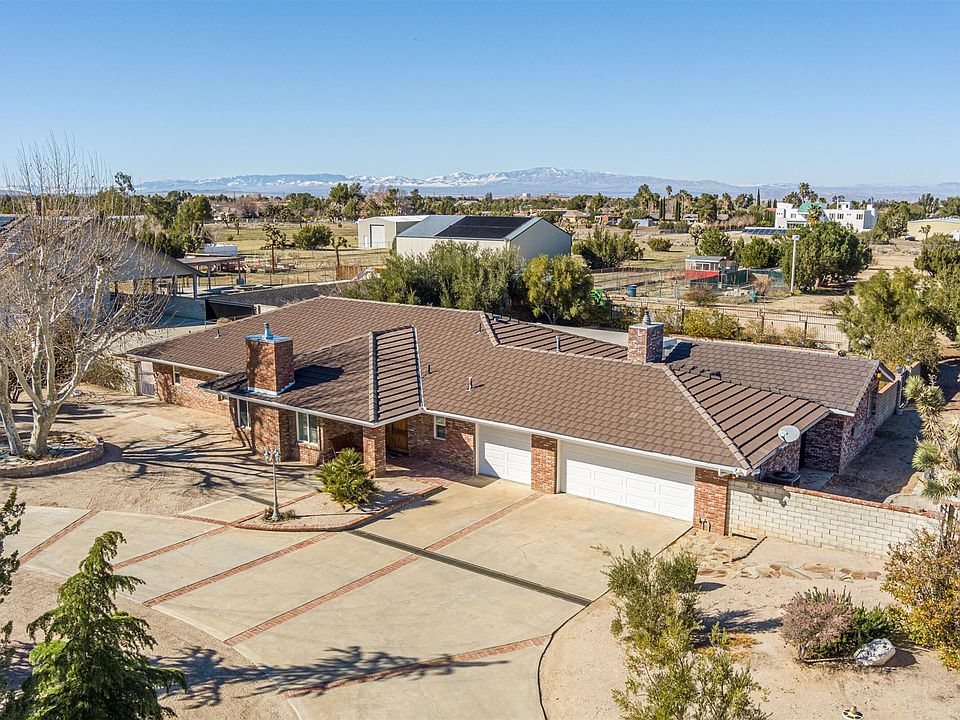 Wow! Check out this extravagant custom-built single-story ranch style home located in the Shadow Acres area of Palmdale. This 3-bedroom 3-bathroom home with a detached 300 sq foot studio/bedroom is situated on a 2.5-acre equestrian lot. The property checks all boxes even for the most discerning buyers. The luxurious features are just remarkable, wall to wall Travertine flooring, Labrador Antique exotic counters throughout the house, upgraded stainless steel appliances, water softener, oversized 20X40 foot custom pebble tech pool, a massive primary bathroom with custom tile features, and the custom granite fire back behind both pellet stoves. The property features a $50,000 solar system, an orchard, large barn, workshop and a fully landscaped fenced and crossed fenced lot with electric gates. This one of kind property will not last see it today before it is Gone Gone Gone!!!