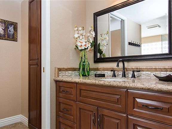 Beautifully renovated entertainerâs dream home in the highly sought-after Valencia Hills. This expansive 4-bedroom, 3-bathroom, 2,327 square foot home with 3-car garage is sure to impress. The first floor comprises the living room with fireplace, dining room, remodeled kitchen and family room, seamlessly brought together into a fluid, open concept living space by the vaulted ceilings in the entry way that extend over the living room. The kitchen was completely redone and boasts granite counters, subway tile backsplash, farmhouse sink, cabinetry with exquisite glass knobs and stainless steel appliances. There is also a guest bedroom and bathroom conveniently located on the first floor. Upstairs, the spacious master suite has dual walk-in closets and a spa-like master bath with glass shower and soaking tub. The additional two upstairs bedrooms share the updated full hallway bath. The secluded and serene backyard is a true extension of the home and has been meticulously designed for entertaining. It is easily accessed from the kitchen and family room though elegant French doors with sidelights. This home has not only been tastefully appointed with high end finishes throughout, it also offers a brand-new water heater and a/c compressor as well as a newer furnace. Valencia Hillsâ resort-like amenities include a community pool, spa, tennis courts, sports field, half basketball court, clubhouse, barbeque area and playground as well as security patrol.