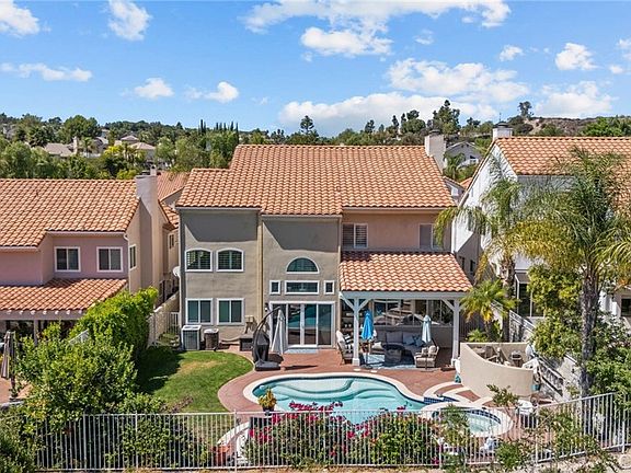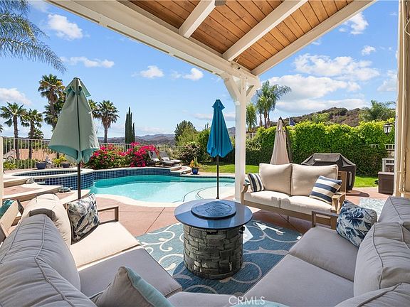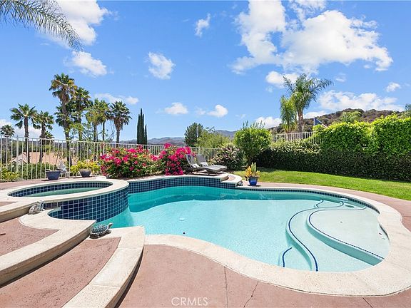 Welcome to this move-in-ready remodeled gem in the heart of Stevenson Ranch, offering nearly 2,600 square feet with 4 bedrooms and 3 bathrooms. You’ll love the open floor plan with soaring ceilings, abundant natural light, and newer energy-efficient windows. The remodeled kitchen is gorgeous, a true gathering spot with tons of quartz countertop space, a large center island, built-in fridge, and double ovens. Step outside to your own private retreat with incredible mountain views, a sparkling pool and spa, and a shady covered patio perfect for relaxing or entertaining. Upstairs, the primary suite features a cozy fireplace, sitting area, walk-in closet, and remodeled bath with soaking tub, shower, and quartz vanity, while a first-floor bedroom and bath are ideal for guests or a home office. Updates include beautifully remodeled bathrooms and a striking new front door, plus the convenience of a 3-car garage, very low HOA, and close proximity to top schools, parks, shopping, and freeway access.
