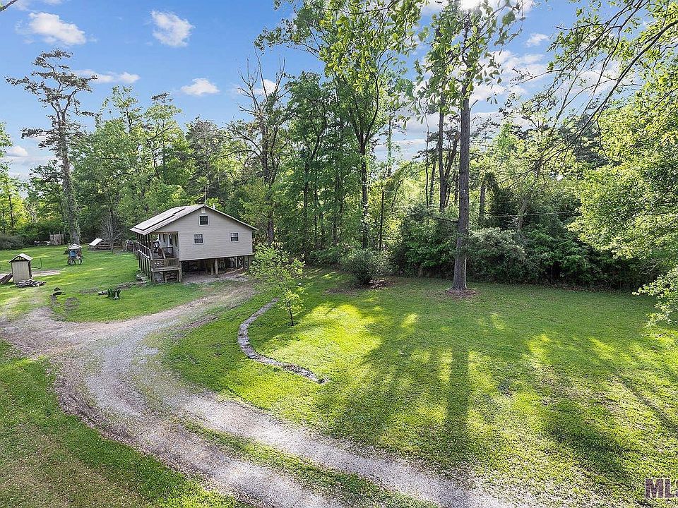 If you want a great place to enjoy country living at it's best, but only 15 minutes from everything...THIS is the place for you. Enjoy Nature from the large front porch that looks out at over the 1 and a half acres of property with a shop (with a/c) in the back yard, a huge shop below the home (could be a workshop, studio, storage) There is an open equipment barn and a very large chicken coop. There's plenty of room for your gardening too. You can have a crawfish boil, fish fry or what ever you please, lot's of space for entertaining outdoors. The laundry room is huge, plenty of room to add a full bath and still have enough space for an office. There is a water softening system and tons of storage room in the attic too. It's prepped for a wood burning stove. The solar panels work very well, very low utility bills. This is a HOMESTEADERS DREAM HOME. Plant your garden, use your water from your well and your sewer treatment system all on your own property.