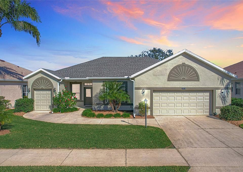 A Stunning Lakefront Retreat .Welcome to the Majestic Sunflower, an exquisite home with a modern, open floor plan and captivating views of Lake Leesman. This beauty boasts neutral flooring, soothing colors, and an abundance of natural light, creating an inviting atmosphere throughout.Key Features: 3 Spacious Bedrooms:The primary suite offers a generous space with ample storage, a luxurious soaking tub, and a separate shower.A second bedroom is positioned on the south side, ensuring privacy for guests.The custom 3rd bedroom has direct access to the Golf Cart Garage—ideal for golf enthusiasts.Full Baths: Both are designed with comfort and functionality in mind.Open Kitchen: Equipped with stainless steel appliances, beautiful Textured Granite countertops, a spacious pantry, and an open design that connects seamlessly to the great room and dining area—perfect for entertaining.Oversized 2.5 Car Garage: Offering ample space for your vehicles and additional storage.Indoor Laundry Room: A convenient, functional space tucked inside the home.Gorgeous Pool & Hot Tub: Recently refinished, the pool offers a serene escape with spectacular views of the lake. The hot tub, heated by propane gas, provides an affordable way to enjoy year-round relaxation.Recent Upgrades:New Roof (2023)New HVAC System (2018).Whether you're sipping coffee on the patio watching the Florida sunrise over the lake or hosting a gathering in the open, airy living spaces, the Majestic Sunflower offers the perfect blend of luxury, comfort, and convenience.Don't miss your chance to own this stunning lakefront gem! The Plantation at Leesburg offers 24/7 guard-gated security and a host of amenities, including:Three clubhouses and pool areas.Two 18-hole golf courses,Pickleball, tennis, bocce ball, archery, On-site restaurant for dining and socializing.Golf cart and furniture are negotiable. Enjoy the active Florida lifestyle in this vibrant 55+ community!