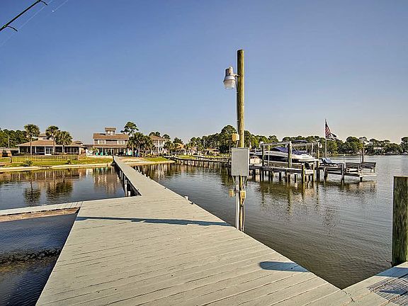 LOOKING TO PUT YOUR FEET IN THE SAND OR HAVE A INCOME PRODUCING PROPERTY ALL YEAR AROUND... This 4 Bed & 4 Bath FULLY CUSTOM HOME on the Emerald Coast water is for you! Beautiful OPEN FLOOR PLAN in all 3 floors boasting RECESS LIGHTING, DURABLE luxury tile, a LARGE KITCHEN with BUILT IN Microwave, All STAINLESS STEEL APPLIENCES, roll out shelves in the pantry, and plenty of maple cabinets. SPACIOUS dinning off of kitchen that can easily fit 10 chairs, HUGE family room with BUILT IN SURROUND SOUND that can fit ANY furniture. All 4 bedrooms are on second floor can easily fit a KING SIZE BEDS with room to fit 2 EXTRA beds. Master Bedroom has TRAY CEILINGS & PRIVATE ROOMY BALCONY WITH A WATERFRONT VIEW perfect for your coffee in the morning. MASTER BATH has a Duel Vanity, JETTED Tub, Premium Shower heads in all bathrooms. 3rd FLOOR has A 10X10 Outlook view of the Bayou! LARGE 9X10 FLORIDA ROOM with OUTSIDE KITCHEN for grilling, Detached heated & cooled garage perfect for GAME ROOM or second living room. ADDITIONAL detached single car garage, INSTANT hot water system, OUTSIDE FAUCET/ SHOWER, intercom, alarm, central vacuum system, 10x35 LANAI, RV CONNECTIONS for water, sewer, and power. Approx 200 feet of new PIER, Backyard offers palm trees and a white sand beach. Seller makes about $50,000+ annually with AIR BNB with an average night paying $732. This home is perfect FAMILY GET TOGETHERS !!!!! SELLER IS MOTIVATED AND AWAITING YOUR OFFER.. SCHEDULE YOUR PRIVATE TOUR TODAY!
