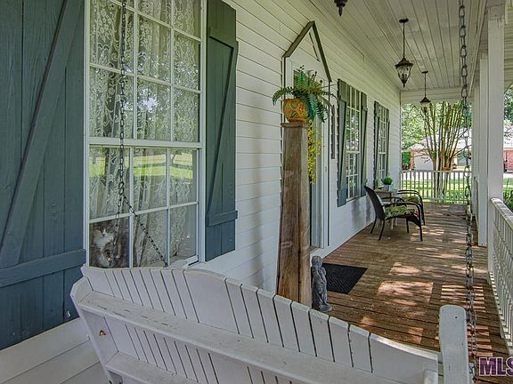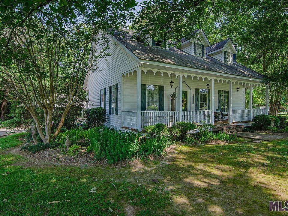 This Acadian style home should be on the cover of Southern Living. You can enjoy swinging on this lovely, shaded porch with its gingerbread trim. Entering the front door is an amazing staircase with a stain glass transom. Beautiful rustic wood floors run through the whole house. Downstairs you will find a large living room, primary suite, kitchen and dining. Custom cabinets, two pantries and island grace the kitchen. Upstairs are the remaining bedrooms, an office and a double sink bath. Off the back porch is a 30 x 30 shop and gate the leads to the rest of the acreage. Everywhere you look is a sweet lagniappe of southern charm.