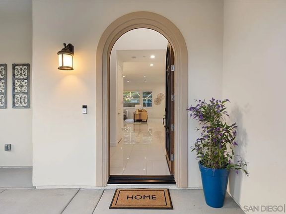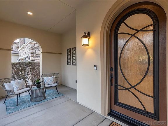 Welcome to your new home in the sought-after Robertson Ranch community of Carlsbad, crafted by Toll Brothers in 2018. This hacienda-style residence boasts high arches and a columned entryway, exuding timeless elegance. Inside, discover five bedrooms and 5.5 bathrooms, including a detached CASITA with a full bath—ideal for guests or live-in au pair. The open floor plan features a large eat-in kitchen equipped with high-end appliances, quartz countertops, a huge center island perfect for entertaining, and a walk-in pantry for ample storage. All bathrooms are adorned with quartz countertops as well. The highlight of this home is the luxurious primary suite, designed as a private retreat. It features a spa-like bathroom with a large soaking tub, dual vanities, and a spacious shower. The suite also boasts his and her closets, providing ample storage and organization. Custom finishes and thoughtful design elements create an atmosphere of tranquility and sophistication. Upstairs, a loft with a built-in desk and a convenient walk-in laundry room enhance functionality. Enjoy remote control window coverings and on-demand hot water for modern convenience. The backyard is designed for low maintenance with turf and a covered patio, perfect for entertaining. Additionally, a covered indoor/patio area seamlessly connects the kitchen with the detached casita. Benefit from the FULLY PAID SOLAR system for energy efficiency with NEM 2.0 and 14 solar panels.