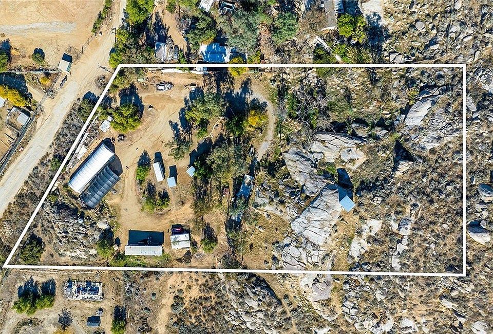 2.85 ACRE Lot with City Water & Electricity and Amazing views of the Valley & City Lights. This property offers great usable space with multiple structures, 2 mobile homes, storage, and multiple fruit trees. This would be a great place for a multi-family compound or just simply a place to get away from the city life…yet a few minutes to major shopping, schools, and freeway access. The property offers multiple structures & a solar powered electric gate: (Covered Shade Structure 24 x 56 x 15 tall) / (Green House 20 x 70 x 12 Tall – 15 x 5 cooler wall – 3.5 ft. exhaust fan – Powered cover – Own breaker 220v & 110v) / (Blue Mobile Home: 1 bed & 1 bath, 12 x 45 on septic, permits unknown) / (Blue Bathroom: 8 x8 on septic), (Brown Building Bedroom: 8 x8 x 12 tall) / ( 3 Roll up storage containers 8 x24) / Mobile home on top of the hill was gutted, seller wanted to redo the interior: 12 x 60) / (Bedroom on top of the hill 10 x 12 with power AND amazing views of the valley & city). Multiple fruit trees, shade…great location to build your dream and this property is truly one that you cannot miss! (All measurements are approximate, unknown IF buildings & blue mobile home are permitted—buyers to verify any and all information provided).