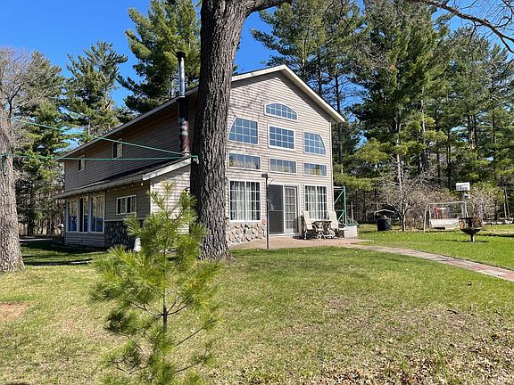 Amazing maintenance free home on the Clam River w/fieldstone exterior accents! One level living w/3 BR's including large open loft & 2 BA's. Gorgeous park like private setting w/11.84 acres and a stunning 650 ft of river frontage on two sides of property. Level approach to river, breathtaking SE protected views w/owned land across the river & boatable to Clam River w/1500 acres of water & 2 bar/restaurants. Completely renovated 2004 to present from top to bottom. Large open kitchen w/updated grey cabinets w/glass door accents, tile backsplash, breakfast bar & gorgeous bamboo engineered hardwood flooring. Greatroom w/soaring ceilings, wood stove, & wall of glass overlooking the river & just a stone's throw from the water's edge. Impressive views in all directions. Quaint 3 season porch for watching all of the wildlife. All one level living & large open loft w/1/2 bath for guests! 3 car det. gar., shed, dead-end-road, very quiet, UTV/snowmobile out your back door & so much more!