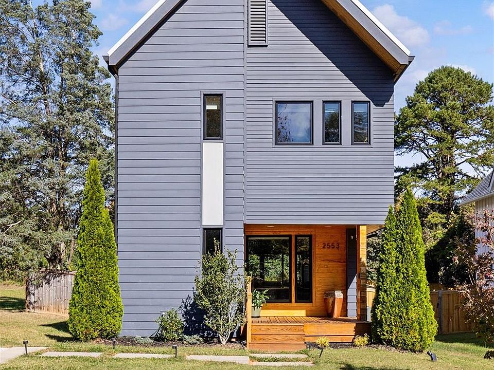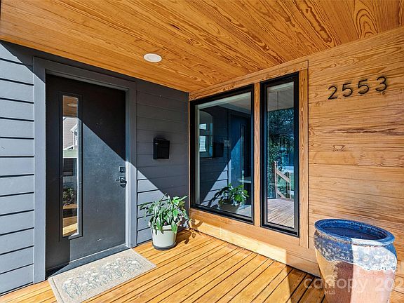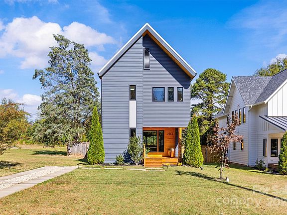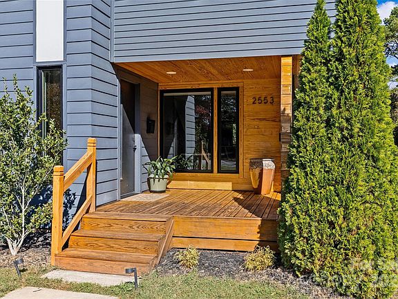 Modern Farmhouse Chic in 28205! Welcome to 2553 Elkwood Avenue, where soaring ceilings and beautiful finishes make an immediate impression. Natural light floods the open-concept main floor, designed with effortless entertaining in mind. The kitchen features a striking statement island with contrast cabinetry and flows seamlessly into the spacious living room, complete with built-ins and extra storage. A half bathroom completes the first floor. Upstairs, the generous primary suite offers excellent closet space and an ensuite bath with a contemporary tiled shower. Two additional bedrooms and another stylish full bath complete the second floor. Step outside to enjoy the covered back porch and stone patio with a firepit. The large backyard is a true urban oasis, highlighted by fruit-bearing trees and bushes including peaches, persimmons, blueberries and more. A Juliet balcony overlooks the serene outdoor space. Located just minutes from Plaza Midwood, NoDa, and local favorites like Lang Van — welcome home!