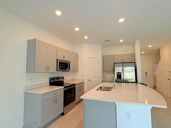 Modern finishesLarge islandHigh ceilingsOpen-concept layoutAmple storageModern kitchenPatio area