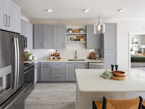 - Exterior features: Bicycle storage, Coffee and Tea Hospitality Bar, Community-Wide Wi-Fi, Electric Vehicle Charging Stations, Flex Yoga and Group Exercise Fitness Studio, Frameless Walk-in Shower and/or Soaking Tub, Granite Counters, Herringbone Tile Backsplash, High-speed Internet Ready, Keyless Home Entry with Mobile Access, Kitchen Island with Accent Pendant Lighting, Modern Studio, 1 and 2 Bedroom Apartment Homes, Multiple Remote Working Nooks, On-Site Maintenance, Open Shelving Above the Kitchen Sink *, Outdoor Space, Package Receiving, Pet Park, Solar Window Shades, Stainless Steel GE Appliance Suite, TV Lounge, Two Residential Courtyards, USB Outlet in the Kitchen, White Quartz Countertops with Gray Veining, Wood-Inspired Plank Flooring in the Living Area