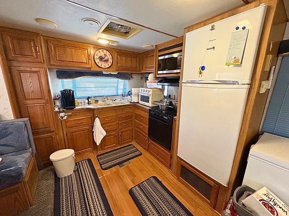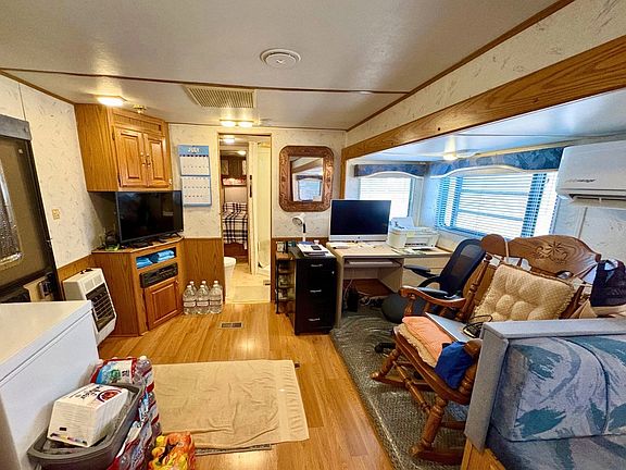 Enjoy affordable living in this well-kept 305FK Eagle Series travel trailer, built in 1994 and located in the heart of town at Avenue B RV Park. This fully furnished 1-bedroom, 1-bath home offers about 245 sq. ft. of livable space, including a slide-out. Inside, you'll find a newly remodeled bathroom, new mattress, 2024 mini-split, and a fully equipped kitchen with a new refrigerator, microwave, freezer, gas stove, and water heater. Also included are a new space heater, TV, and upgraded propane tanks. The roof has been re-coated, and the exterior freshly painted and striped. A storage shed and outdoor plants are included. Park amenities feature a clubhouse with card games. Space rent is $315/month, plus $15 for water, trash, and sewer. Owner-occupied. Morning showings only, with one hour's notice. Move-in ready and centrally located-don't miss this opportunity!