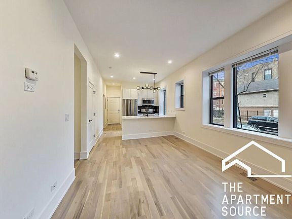 Discover modern living in this gut-rehabbed 4-bedroom, 2-bathroom duplex-down apartment at 2553 W Hirsch Street in Chicago. This residence boasts designer finishes and light fixtures, complemented by real hardwood flooring throughout. The open-concept kitchen and living area create a spacious environment, featuring a new kitchen equipped with high-end stainless steel appliances, quartz countertops, generous slow-close cabinets, a dishwasher, and a garbage disposal. For your convenience, the apartment includes in-unit laundry facilities and is climate-controlled with central heating and air conditioning. This pet-friendly building ensures all your creature comforts are met. Situated in the vibrant Humboldt Park neighborhood, the property is near the expansive Humboldt Park itself, offering green spaces and recreational opportunities. The area is known for its rich cultural scene, diverse dining options, and boutique shopping experiences. Additionally, the neighborhood hosts various community events and festivals throughout the year, fostering a lively and engaging atmosphere. Experience the perfect blend of modern amenities and neighborhood charm at 2553 W Hirsch Street.