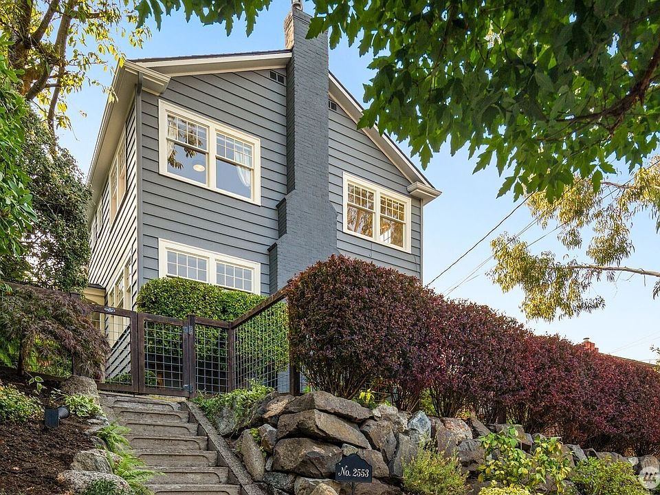 Perched above the street, this home feels like a private retreat in the heart of Queen Anne. Sunlight fills every room through generous windows, creating a warm, inviting glow. The spacious living rm is cozy with gas fireplace & all 3 bedrooms on the same level for ease & comfort. French doors open to a charming back patio where twinkle lights & lush greenery create the perfect setting for outdoor dinners or casual get-togethers. The landscaping is as thoughtful as it is beautiful, w/year-round greenery & flowers blooming in every season. The elevated setting offers rare privacy & quiet, while the alley carport adds everyday convenience. Walk to QA cafés, restaurants, with Fremont just a short stroll away. Life here feels quaint & peaceful.