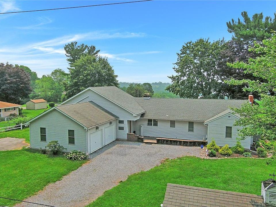 MULTIPLE OFFERS. Highest and Best by 8/4 at 5pm please. Nestled in a quiet neighborhood with no traffic and located at the edge of an elevated location creating incredible views. This one floor living plus loft is an opportunity to enjoy complete custom surroundings throughout this lovely home. The entrance way impresses you with the wood and tile floor transition into a delightful living area with multiple rooms for recreation, working from home or studio. The second floor loft currently used as an office is great as a guest room, expansion space or as you choose to define it. The dining room is a feature element boasting a wood burning fireplace and a view for miles. Exciting kitchen stimulates the imagination with checkerboard floor, pine ceiling and stainless appliances. Center island and (2) pantries. The bedroom wing has 2 bedrooms, 1 bath in addition to a wonderful master suite and gorgeous bath. Full basement, out building and 2 car garage.