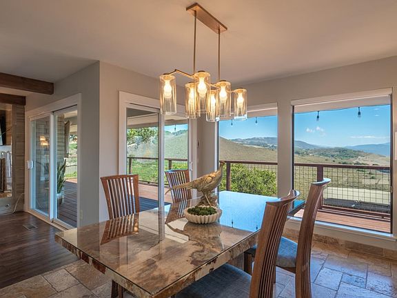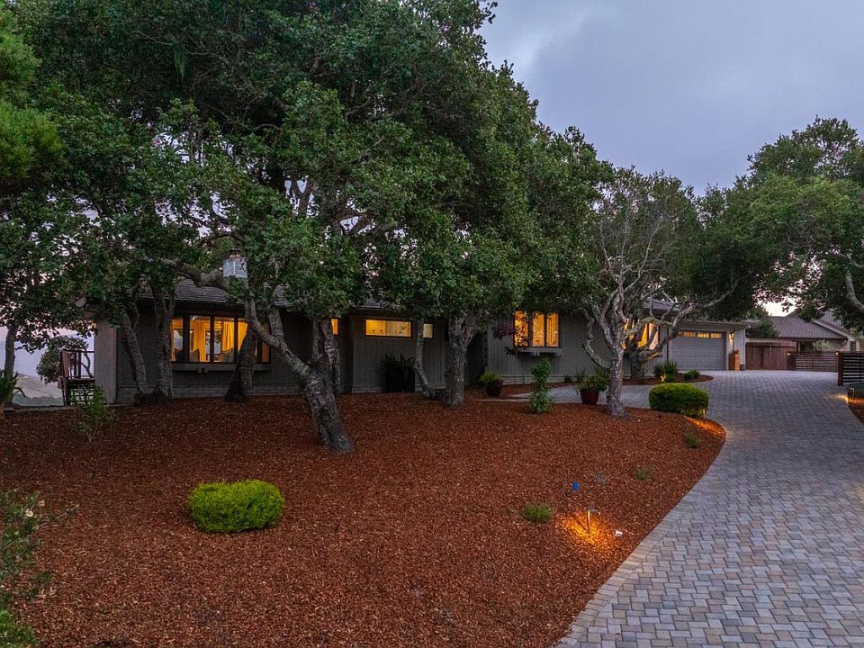 Tucked on a private lane in sunny mid-valley and located in the coveted Carmel School District. This remodeled 3-bed, 3-bath single-story home offers effortless living and entertaining. The open layout includes spacious living, family, and dining areas that flow into a modern kitchen, all filled with natural light from walls of windows. Enjoy the ease of single-story living, two cozy fireplaces, and expansive decks with a fire pit, hot tub, and 180° views of vineyards, Garland Park, Big Sur and Carmel Valley Ranch. A sunny detached art studio or flexible office space adds even more versatility. Upgraded throughout this home is a must see.