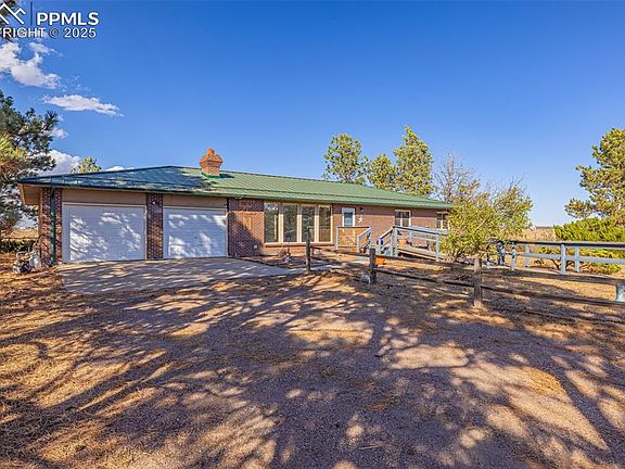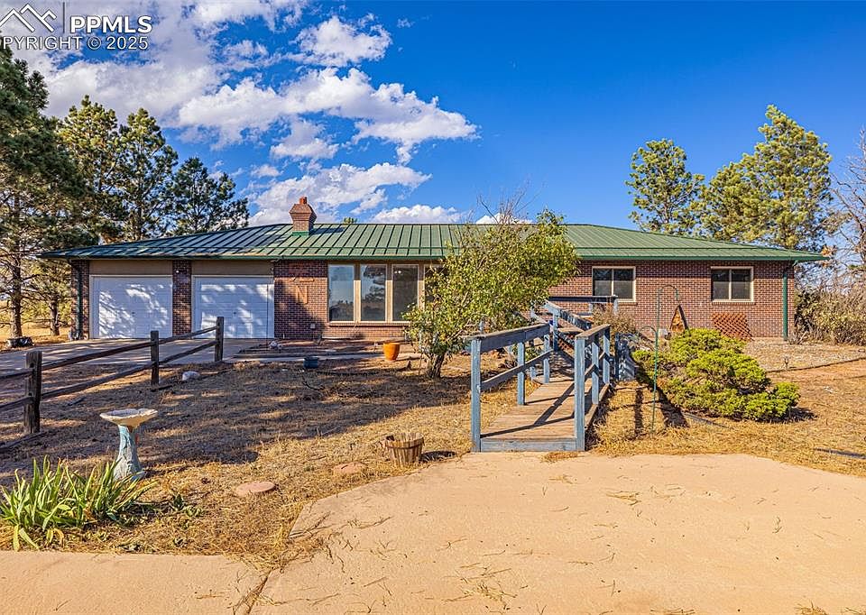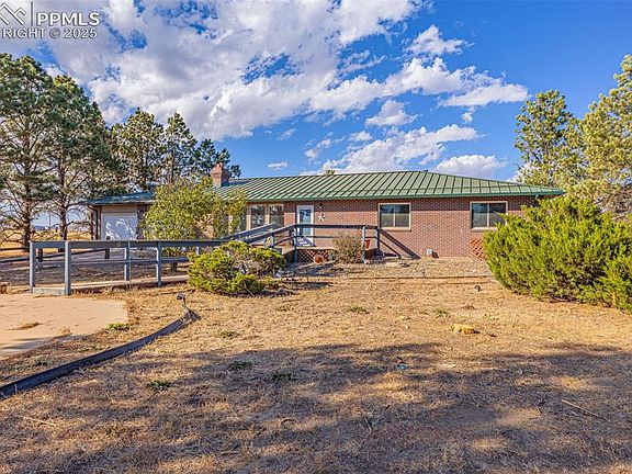 Welcome home to this stunning brick ranch-style residence perfectly situated on over 18 acres in Calhan, Colorado. Surrounded by mature, thoughtfully planted trees, this property offers the ideal blend of privacy, seclusion, and wide-open space. Step inside to a light-filled interior where large windows invite in plenty of natural light and showcase the scenic surroundings. The kitchen features beautiful oak cabinetry, stainless steel appliances, and ample counter space—perfect for everyday living or entertaining. Enjoy the comfort of brand-new carpet throughout the main level, which also includes three spacious bedrooms, a primary suite with private bath, and an additional full bathroom. The finished basement expands your living space with a generous rec room, a charming brick-style bar, two additional bedrooms, and a three-quarter bath—ideal for guests or family gatherings. Outside, the property truly shines. The fully fenced 18 acres include a homemade shooting range, beautiful mountain views, and endless opportunities to enjoy the Colorado outdoors. Conveniently located just 20 minutes from Falcon, you’ll experience peaceful country living without sacrificing access to nearby amenities. Whether you’re looking for a private retreat, a place to spread out, or simply a slice of Colorado paradise, this property delivers it all.