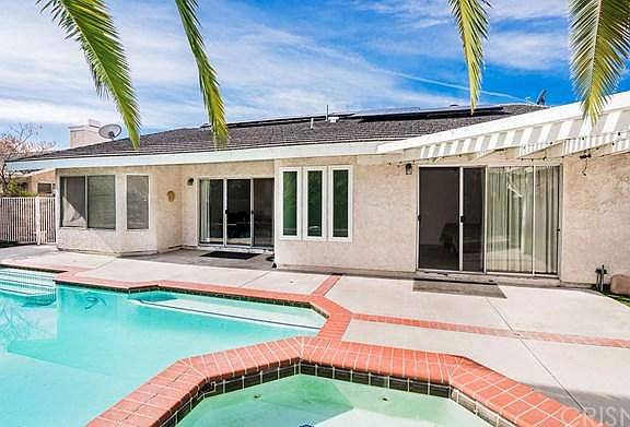 Perfectly located at the end of the cul-de-sac, this 4-bedroom single story pool home is Valencia at its finest! This hugely popular Heritage neighborhood is behind Granary Square & is close to all the amenities that Valencia is famous for - paseos, parks, pools & award winning schools. This home checks a lot of boxes with sharp curb appeal from the fresh exterior paint & newer garage door. Brand new carpet. Both baths have been completely redone at considerable expense in all the current light colors with new tile, vanities, shower/tub, fixtures, lighting - everything! Updated kitchen with stainless appliances, granite counters & newer laminate flooring that leads into the family room. Open floor plan with vaulted ceilings and very light & bright. Low maintenance yard with pool/spa & shade bar. HOA fee of only $53/month & no Mello Roos are two of many reasons this neighborhood is so in demand. Great location, great single story!