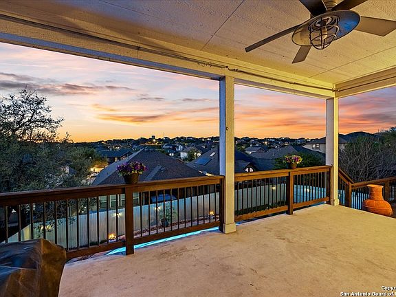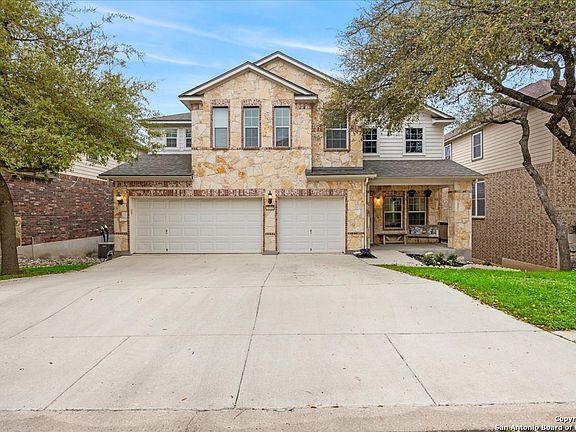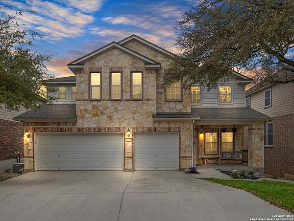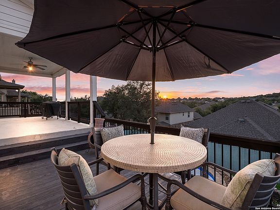 Discover the perfect retreat in the sought-after The Point at Bulverde Village. Home is located in the highly sought after Comal ISD that offers top-notch opportunities for everyone. This spacious home welcomes you with open arms, offering five generous bedrooms and four full bathrooms, along with a cozy media room and a refreshing in-ground pool - the ultimate hub for hosting gatherings and making cherished memories. Step inside to find tasteful touches throughout the residence. From the charming wood accent wall in the formal living area to the sleek kitchen adorned with upgraded lighting and a captivating backsplash, every corner exudes style. Freshly installed carpet (as of April 2024) adds a touch of luxury underfoot, while a brand-new roof (also updated in April 2024), and a new pool pump (updated in 2024) ensure peace of mind for the new owner. Entertaining is a breeze in the social spaces, where conversations flow effortlessly. Grab a bite in the kitchen, while your guests enjoy the warmth at the fireplace that adorns the family room. A guest suite on the main level offers privacy and comfort for visitors, while the upstairs beckons with equally impressive features. The primary bedroom is a haven of relaxation, bathed in natural light and boasting ample space for your furniture. Pamper yourself in the owner's retreat, complete with double sinks, a standalone shower, and a soothing garden tub. For movie nights or game days, retreat to the dedicated media room - your personal cinema experience awaits. Outside, the fun continues with a sprawling outdoor entertaining area that steals the spotlight. Whether it's lounging on the covered patio or soaking up the sun on the deck, this space is sure to be a favorite gathering spot for family and friends. And with summer here, there's no better time to dive into your own private salt water in-ground pool and embrace the resort-like lifestyle you've always dreamed of. Welcome Home!