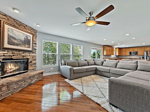 Look no further! Beautiful 2 story home with finished basement in Leighlinbridge subdivision. First floor features large open concept kitchen, family room and dining room complete with hardwood floors and fireplace. New sliding door in kitchen, new SS LG appliances, maple cabinets, white trim and 6 panel doors on throughout first floor. Large mudroom off the garage with plenty of storage and counter space and newer washer/dryer. Upstairs has new carpet with upgraded padding. 4 Bedrooms plus a loft. Large owners suite with walk in closets and en-suite bathroom with shower and separate whirlpool tub. Finished basement with bar and built in fish tank. Area that can be walled off for 5th bedroom. Deck from kitchen brings you down to a perfect outdoor oasis. Brick pavered patio with cedar pergola and unobstructed views of pond and trail. MULTIPLE OFFERS RECEIVED HIGHEST AND BEST BY 7/10 @ 8PM.