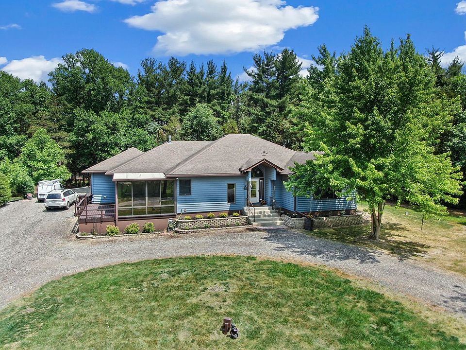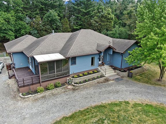Here is a rare opportunity for resort-like privacy and nature's beauty. A 4BD/3BA Ranch home in unincorporated Monee located on a 6 acre wooded lot with tall pine trees includes a 3-acre pond. The property is an oasis to tons of wildlife. 2 sheds and plenty of opportunities for expansion. Two separate, but attached fenced yard spaces with dog door entrance make it an absolute paradise for your dogs. Handyman's dream basement workshop, and 3-car extended heated garage. Truly a private paradise with amazing acreage and picturesque views. The pond is fully stocked with largemouth bass, two bluegill species, catfish and grass carp to eliminate summer algae. A windmill powers two aerators to keep the pond oxygenated and to keep it from freezing solid in the winter. Over 2400 sq feet on the main level with an additional 2200 finished sq. footage in the basement easily to be used for related living space. The lower level provides the huge, vented workshop, cellar for storage, bedroom, full bathroom, and a space easily converted to a kitchen. Plenty of space with RV connection, store your ATV's, canoes, boats and so much more. "Moosedog Lake" provides fun for fishing, kayaking, picnics, bonfires and large gatherings. Irrigation extends to a perfect area for future gardens. Enjoy captivating views with your western exposure. The home also comes with a Generac whole house generator. It has been professionally cleaned to be move-in ready. Do not miss out on this one-of-a-kind Gem!! Location: very close to I-57, Amazon, Carvana, and Governors State U. Situated at the end of the cul-de-sac in an unincorporated area between Monee and Crete. PRICED TO SELL, DO NOT MISS OUT ON THIS OPPORTUNITY!!!