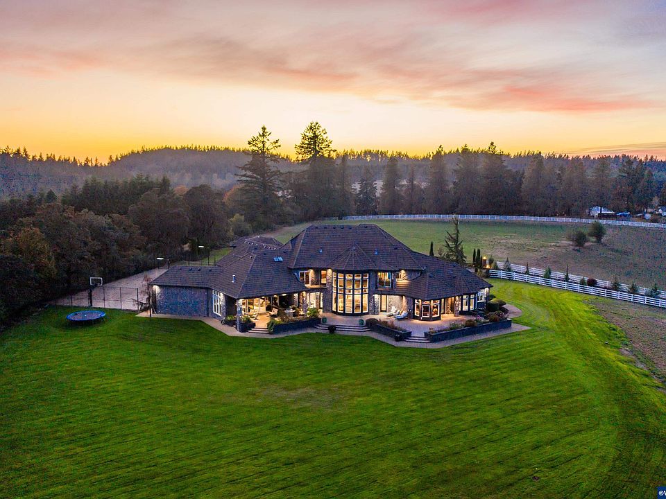 Luxurious Estate with Breathtaking Mountain Views This spectacular 5-bedroom, 7 full and 2 half-bath estate offers unmatched elegance across 11,000+ sq. ft. Nestled in a stunning setting on 32 acres, it’s a dream home for those seeking luxury and comfort. Enter through a grand foyer with towering ceilings and tile floors, setting the stage for the impressive interior. The chef's kitchen with a spacious butler pantry is designed for culinary enthusiasts, while the 6+ car garage and large shop provide ample space for projects and storage. Enjoy hosting in the light-filled main living room, featuring a beautiful fireplace, mantle, and built-ins. The family room has a wet bar and dedicated movie theater, perfect for entertaining. Choose from two formal dining rooms for memorable meals with family and friends. A secret door leads to a hidden cellar with a private bathroom, offering a unique, intimate gathering space. Outdoors, the expansive patio features a cozy fireplace and built-in BBQ, while the fenced sport court with a basketball hoop promises endless fun. Retreat to the luxurious master suite, complete with a fireplace, sitting area, luxury shower, large jacuzzi tub, and his & hers walk-in closets and restrooms. Each of the three upstairs bedrooms has an ensuite bathroom, with access to two balconies through either the third bedroom or the study. The estate also includes a workout room with mirrors and a spacious bonus playroom. With every luxury and convenience, this estate combines sophistication with practical elegance.