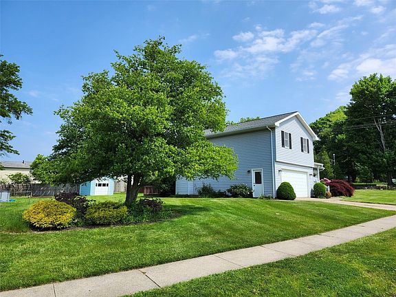 Immaculately Maintained & Move-In Ready This well-cared-for home offers comfort, space, and versatility from top to bottom. Featuring a semi-open concept layout, it seamlessly blends functionality with charm. Inviting living spaces. relax in the cozy family room complete with a fireplace, perfect for chilly evenings. The eat-in kitchen and formal dining area provide ideal settings for everyday meals and special gatherings. A spacious primary suite boasts an en suite bath and a generous 7x7 walk-in closet, offering both privacy and convenience. Room to grow with a 24x23 unfinished basement presents a clean, open canvas—ready for your personal touch. The 21x22 garage and flat 4-car driveway ensure ample parking and storage. For outdoor enjoyment, step out onto the 16x16 back patio with a SunSetter awning, perfect for relaxing in the shade. The double lot is adorned with mature landscaping, creating a peaceful retreat. A 12x14 shed with garage door adds even more utility and charm.