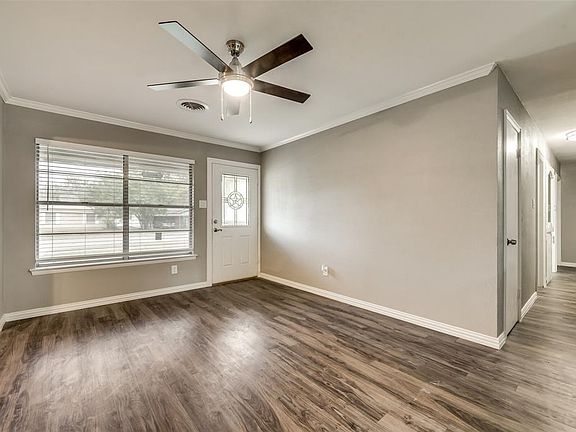 This home has an open and spacious floor plan! The Living room and step down family room garage conversion provide lots of space for family gatherings. The kitchen is wide with granite counters, NEW laminate flooring and there is plenty of room for those couples that like to prepare meals together. The long hallway on the left side features a coat broom closet, small bedroom guest bathroom and a larger bedroom. The long hallway on the right side features the master bedroom and New remodel half bath. This home is walking distance to A.S. Johnston elementary and very close to Crockett Middle School