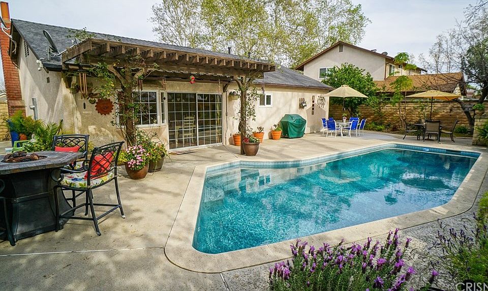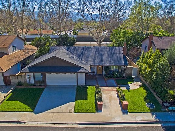 NO HOA! NO MELLO ROOS!!! Single story pool home in prime Valencia. Open floorplan as you enter and can be easily modified to a three bedroom home. Living room with fireplace, crown molding, ceiling fan, shutters, and newer flooring opens through framed wall to kitchen. Kitchen is very spacious with lots of cabinets, eat in area, and sliding glass doors to entertainersP backyard. There are two full bedrooms and baths, the master has its own private bath. The extra large 2 car garage has a storage area, workshop area, a laundry area and a separate enclosed office. The backyard of this home is great with sparkling pool and patio areas perfect for relaxing and entertaining. Close to award winning schools, shopping, and easy freeway access.