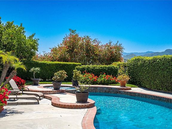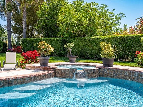 WELCOME to this STUNNING Romantic Mediterranean HIGHLY UPGRADED VIEW HOME in a Cul-de-sac with ENTERTAINER'S BACKYARD PARADISE on a LARGE LOT. SELLER SPARED NO EXPENSE W/OVER $100,000 IN UPGRADES. Featuring Sports Pool & Built-In Spa w/Tranquil Waterfall, Romantic Fire Feature, Oversized Covered Pergola w/Italian Lights, Large Grassy Area, Custom Landscape & Hardscape w/Designer Style Lighting. Your PRIVATE OASIS Offers 5 Bedrooms & 3 Bathrooms (w/Downstairs Bed & Bath) & is Surrounded by the Most Beautiful Lush Landscaping w/Gorgeous Ivy Hedges/Plants/Rose Bushes & Cascading Water Fountain. You’ll Appreciate Elegance at Entry w/Stunning Cathedral Ceilings, Luxurious Arched Doorways & Windows which Elevates the Design of this Home, & Gorgeous Laminate Wood Flooring with Open Floorplan Showcasing the Large Living Room. First Floor Amenities Include: Remodeled Gourmet Chef’s Dream Kitchen w/Magnificent GRANITE ISLAND w/Seating, Granite Countertops w/Designer Backsplash, Under Cabinet Lighting, Gorgeous Cabinetry w/Organizers, Tons of Cupboards & Lots of Counter Space, Large Dual Sink, Dishwasher, Professional Grade Appliances, Newer Refrigerator, Oven, Built-in Microwave, 5 Burner Gas Stove, & Extra-Large Tile Flooring. Dining Area w/Atrium Style Windows Opens to Family Rm w/Slider Door that leads to Designer Backyard. Alcove for Optional Office/Workspace off of Kitchen also leads to the Backyard through Elegant Double French Doors w/Built-In Blinds & Phantom Screen Doors. Retreat to the Master Suite Featuring More Spectacular Views. The Master Bath has Huge Walk-In Closet, Dual Sink Vanity, Separate Shower & Jetted Tub. Additional 3 Large Bedrooms have Ample Storage Space. Upstairs Bathrm w/Tub & Shower. Laundry Room is Huge & Conveniently located Inside w/Lots of Cabinets/Storage. FEATURES INCLUDE: Keyless Entry, Ring Doorbell, Stunning Front Door, Recessed Lighting Throughout (including the 3 Car Garage), Ceiling Fans in all Bedrooms, Mirror Closet Doors, Dual Pane Windows, Plenty of Natural Light, Wood Laminate Flooring, Newer Carpet on Stairway, Hallway, & Upstairs, Family Rm has Surround Sound Speakers, Dual A/C, Re-pipe, Private, Plenty of Room for Family Gatherings, & 3 Car Side by Side Garage w/Direct Access. NO Mello Roos & Low HOA. AWARD WINNING SCHOOLS: PICO ELEMENTARY, RANCHO PICO JR. HIGH, WEST RANCH HIGH SCHOOL. Close Proximity to Shopping, Restaurants & 5 Fwy. Highly Sought After- Homes Like This Don't Come on the Market Often So Don't Wait!