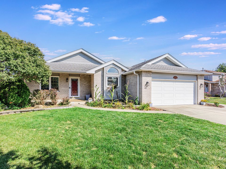 McCorkle's 3 bedroom, 3 bath brick ranch subdivision home located on premium cul-de-sac lot in Monee. Modern & move-in ready home features cathedral ceiling living room/dining room/kitchen greeting you once you walk into the home. Bam, woodburning brick fireplace captures your attention in the living room. Custom laid hardwood flooring designed perfectly with the home. The kitchen has 32" oak cabinets/corian countertops/new stainless steel appliances & tons of countertop space for a novice or chef. Separate eating area off the kitchen leads to backyard with a sliding glass door. All 3 bedrooms are located on the main level including 15x12 primary bedroom w/remodeled bathroom. The primary bath has a 36" vanity/soaker tub & shower w/new tiled surround. Secondary bedrooms have lots of closet space & ceiling fans. Full, finished basement has epoxy flooring, family room/bonus room/office or possible 4th bedroom/laundry & full bathroom. There is a dry bar in the family room. Owner has a backup sump pump. Private backyard has a tumblestone patio & walkway and a brand new 5 foot privacy fence installed. A 10+ plus home!