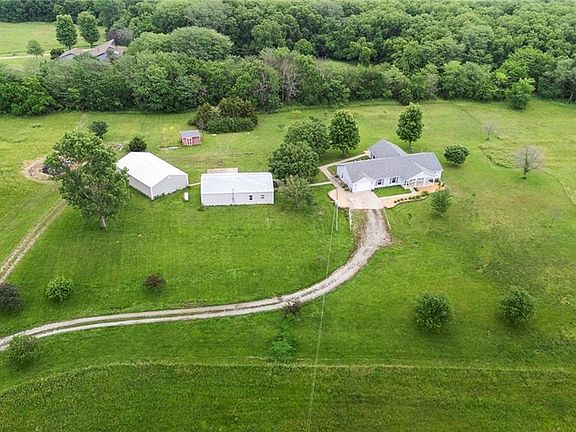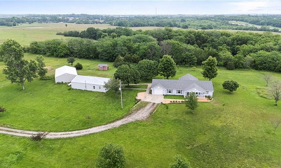 Serene Acreage living in the country tucked away atop of hill with views for miles! 22+ acres for your own space and tranquility. 2,000+ square foot ranch built in 2005. Zero entry - no steps. H-U-G-E vaulted addition with sun galore. Two (2) large functional outbuildings, each 1,500 sq ft (50'x30'). Save hundreds on utilities with Geothermal($120/month combined!!). Pond. Peaceful. Trees. Easy commute to Lawrence and KC Metro!! 22.7 Acres. 2,000+ square foot ranch built in 2005. Zero entry - no steps. H-U-G-E vaulted addition with sun galore. Two (2) large functional outbuildings, each 1,500 sq ft (50'x30'). Geothermal to save on utilities ($130/month combined!!). Pond. Peaceful. Trees. Access directly off K-32 (limited dust - located on asphalt). Will go fast!! Access directly off K-32 (limited dust - located on asphalt). Will go fast!!