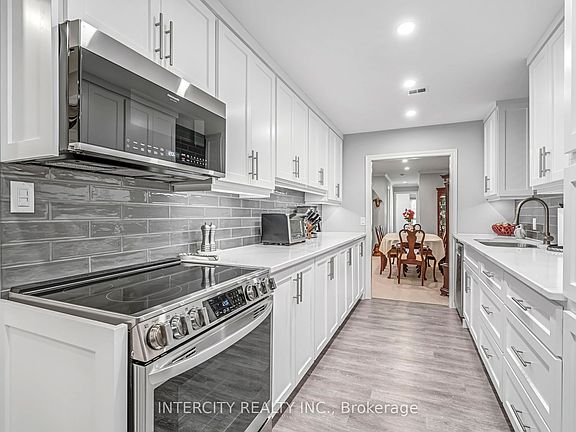 New stainless-steel appliancesQuartz countertopsDesigner backsplashBreakfast nookRenovated washroomsComfort height vanitiesModern lighting and fixtures