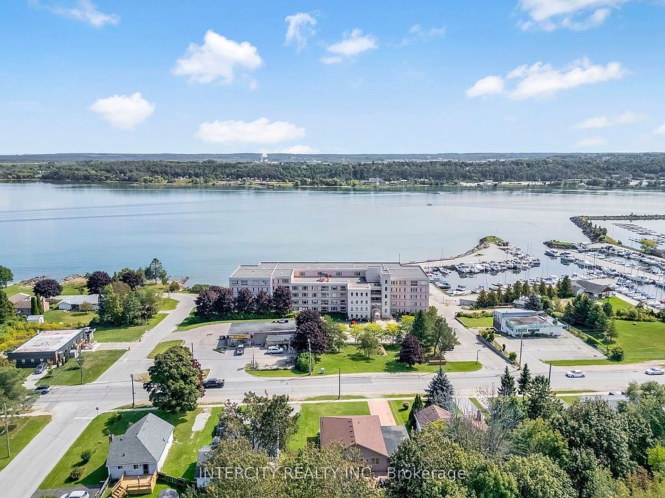 Step into this expensive 1800 Sqft renovated Harbor Front condo in beautiful Owen Sound. The 2-year new Kitchen boasts custom real wood soft close cabinetry, new stainless-steel appliances, Quartz countertops, and designer backsplash. Breakfast nook provides space for additional dining/desk area. Two renovated washrooms blend style and function with open and closed storage, comfort height vanities, and modern lighting and fixtures. The second washroom includes a soaker tub and rainfall shower head (2023). Freshly carpeted in 2022 and professionally painted in 2023. Smooth ceilings (2023) throughout living/dining area and hallways. Pot lights (2023) and Crown moulding throughout. Nothing left to do but move in. Oversized space for gathering or quiet evenings at home. Additional features include secure building entry, newly renovated common space, and dedicated underground parking and storage. Perfectly situated along the shores of Georgian Bay, with access to over 200 ft of waterfront. Located close to shopping, dining, marina, and amenities, this condo delivers the ideal combination of size, convenience, and low maintenance. Don't wait to book your showing. This beautiful suite awaits you!