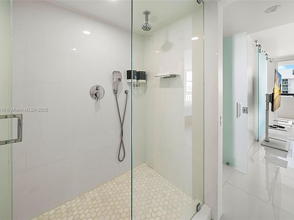Stunningly renovated apartment with exquisite details. Stunning views of the beach and the city of Miami through the ceiling-to-floor high-impact glass windows and sliding doors from every corner and from the oversized balcony. No expense was spared. This 1 bedroom, 1.5 bathrooms apartment was gutted and everything is brand new. The kitchen is a gourmet cook's dream with a big white marble center, ideal for prepping and cooking, and entertaining guests. While cooking, the gorgeous views of the beach serve as a soothing background. The apartment boasts many luxurious details, such as glass barn doors, Italian glass flooring, elevated ceilings, LG Smart TVs, Toto bidet/toilets, Elfa-system walk-in closets. This piece of art is at walking distance from virtually everything and everywhere.