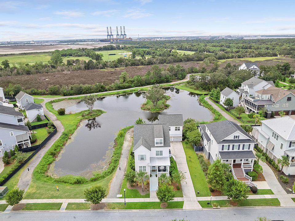 Welcome to 2555 Josiah Street -- where peaceful pond-front living meets stunning sunset views and exceptional design. Perfectly positioned to capture glowing skies over tranquil ponds and marshland, this home is a rare opportunity to live surrounded by natural beauty with the convenience of Daniel Island living.Set along the island-wide jogging and walking trail, enjoy morning strolls with the scent of salt air, breezes from the Cooper River, and the gentle sounds of local wildlife. The Crow's Nest Pool, Daniel Island School, shops, and restaurants are just a short walk or bike ride away.This home checks all the boxes -- and then some -- including a private pond location that brings unmatched privacy and views. Three spacious floors, a separate FROG, and an entertainer's dream backyardset this home apart. From the moment you arrive, you're welcomed by a charming tin-roof front porch, a long private driveway, and peaceful pond views from both the side and rear of the home. Inside, rich hardwoods, soaring ceilings, custom trim work, designer lighting, plantation shutters, electric blinds, and fully customized closets reflect the level of detail throughout. A formal dining room and spacious study (or optional guest suite with bath) flank the front foyer. The open living and kitchen areas showcase captivating water views, quartz countertops, stainless appliances, a farmhouse sink, and a functional butler's pantry perfect for entertaining. Upstairs, the luxurious owner's suite overlooks the pond and features a spa-like bath. Two additional bedrooms with share a large bathroom, while the convenient upstairs laundry room makes everyday living a breeze. A private third floor with full bath offers a great space for guests, a playroom, or a second office. The detached garage includes epoxy floors and a finished FROG complete with barn doors, a full bath, and a kitchenette is ideal for guests, an office, or a creative studio. But the true gem? The backyard oasis. This fully fenced, professionally hardscaped retreat is surrounded by pond and marsh views and features an incredible covered bar area with wet sink and space for grilling, gathering, and enjoying some of the most spectacular sunsets you'll ever see. Don't miss this opportunity to live in one of Daniel Island's most picturesque settings. Homes with views and features like this are incredibly rare. Buyer to pay a one-time neighborhood enhancement fee of .5% x sales price to Daniel Island Community Fund at closing and an estoppel fee to the Daniel Island Property Owners Association, Inc. Buyer/buyer's agent to verify anything deemed important such as square footage, flood zone, club memberships, school zone, etc. Please include Daniel Island Community Fund Addendum, proof of funds or preapproval letter with all offers.
