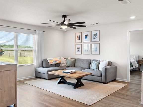 Welcome home to this better-than-new beauty on a FULL ACRE! This spacious 4-bedroom, 2-bath home features an inviting open-concept layout with plenty of room to relax or entertain. Inside, you’ll love the neutral color palette and durable luxury vinyl plank flooring throughout—no carpet anywhere! The kitchen showcases granite countertops, stainless steel appliances, a large island, and ample cabinet space. The split floor plan offers three bedrooms and a full bath on one side, while the private primary suite sits opposite with its own bath featuring a double vanity, granite counters, water closet, and a huge walk-in closet. Step outside to a fenced backyard that provides both privacy and plenty of room for outdoor living—plus, the property extends well beyond the back fence. And even better? No HOA!