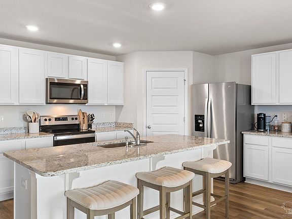 Large islandFull acreFenced backyardNeutral color paletteSplit floor planInviting open-concept layoutKitchen showcases granite countertops