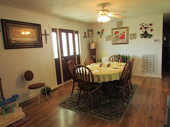 Quiet Country Setting for this well kept home! It sits on 2.5 acres with a concrete drive and separate garage and storage building. Home has 4 bedrooms, 2 baths with a large Living Room with built in shelves and a gas fireplace! Separate Dining Room with plenty of room for a family. Large Master Bedroom with door to go out to the wrap around porch. 4th bedroom is in the basement with door to a patio area.