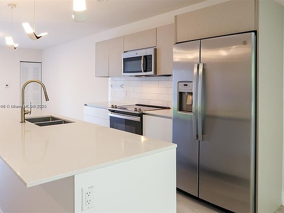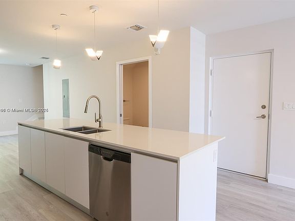 Aventura Village, completed in 2020, features spacious split-level, contemporary townhomes centrally located near Aventura, on W. Dixie Highway. This beautiful unit features an open kitchen floor plan with center island, stainless steel appliances, soft-close cabinets and split living and dining areas for extra comfort. Bedrooms are located on the second level, along with a comfortable den/home-office space, and convenient full-size washer and dryer units upstairs. This residential complex is fenced with gated entry for extra security, while the community pool adds just the right touch for weekends at home. This lovely unit is unfurnished, move-in ready and easy to show. Added benefit, the unit has been freshly painted.