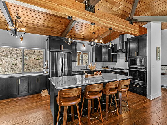 gated 0.98-acre lot, this serene property offers captivating views of Mt. McLoughlin, with vibrant sunrises, colorful sunsets, and frequent wildlife sightings adding to the tranquil atmosphere. A picturesque tree-lined driveway welcomes you to a thoughtfully updated 3-bedroom, 2-bath residence. Inside, enjoy a beautifully remodeled kitchen, luxurious master bath, and updated laundry room. Recent improvements include a new electrical panel, recessed lighting, and a new septic system (2019). Energy-efficient features abound with solar panels, newer mini splits in every room, a newer wood stove for cozy winter nights, and an EV charger. Offering peace, privacy, and proximity to town, this home is the perfect blend of rural charm, modern convenience, and sustainable living.