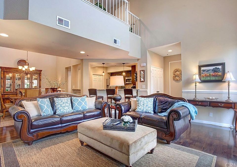 RARELY OFFERED! Windemere "Manor Home" architecturally dramatic and picture perfect! Open 2-story floor plan features spacious living room & dining area, soaring vaulted ceilings, fireplace and lots of natural light. A large deck off the living room offers indoor/outdoor living and entertaining with lovely views from this prime end-unit location. The kitchen overlooks the living area with it's granite counters and stainless appliances. The 2 master bedroom suites feature double sinks, quartz counters and lots of closet space. The upstairs master suite has dramatic vaulted ceilings and a skylight in the bathroom area. The loft makes a great sitting area or office and enjoys an additional shared patio accessible from this area. Featured throughout are wood floors, new central AC, laundry room, water-conserving plumbing fixtures, new light fixtures and new window treatments throughout. This unit is steps away from the elevator and stairs that takes you to your 2 conveniently close subterranean parking spaces (164-165) that are monitored by on-site security. Low HOA fee. ***Windemere features a tree-lined gated entry with 24 hour security guards, well-manicured landscapes, a tropical pool, lap pool, 3 Jacuzzis and a multi-million dollar clubhouse that includes 3 racquetball courts, indoor basketball court, an exercise room, sauna & locker room and game room. Windemere is located conveniently close to shopping, beaches, schools, parks, restaurants & freeways.